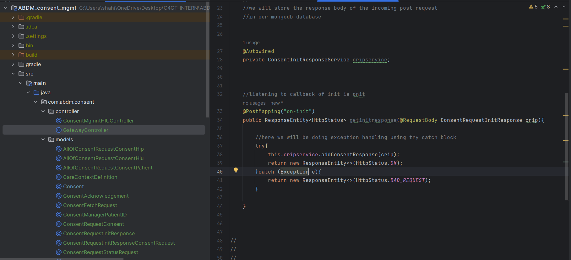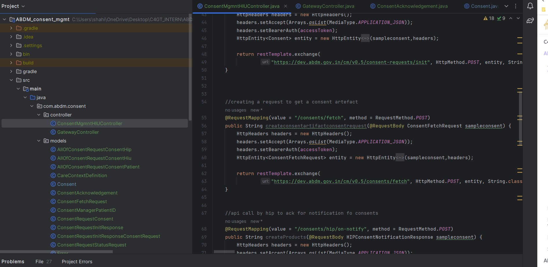 springboot template that was connected to mongodb database over code for hitting abdm consent apis overall code for listening to abdm callbacks
